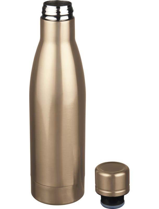 Bouteille isolante Vasa 500ml. Conservez vos boissons chaudes pendant 12 heures ou froides pendant 48 heures grâce à cette bouteille avec isolation par le vide. Bouteille en acier inoxydable à double paroi 18/8 avec isolation par le vide et placage en cuivre sur la paroi interne qui permet de conserver le froid ou la chaleur