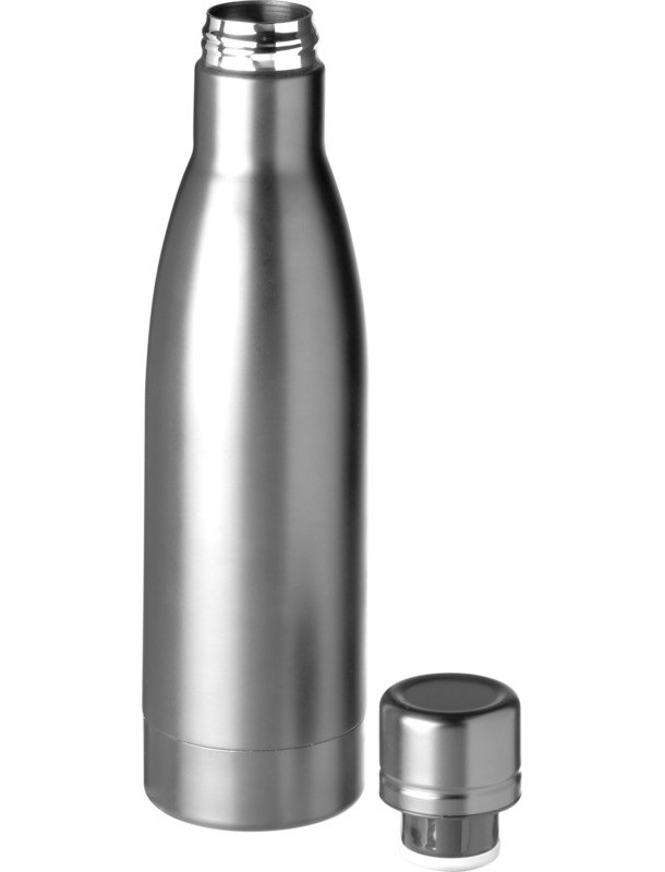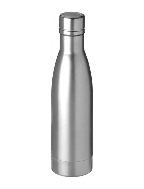 Bouteille isolante Vasa 500ml. Conservez vos boissons chaudes pendant 12 heures ou froides pendant 48 heures grâce à cette bouteille avec isolation par le vide. Bouteille en acier inoxydable à double paroi 18/8 avec isolation par le vide et placage en cuivre sur la paroi interne qui permet de conserver le froid ou la chaleur de vos boissons selon vos exigences. Capacité 500 ml. Sous coffret cadeau Avenue. Acier inoxydable.