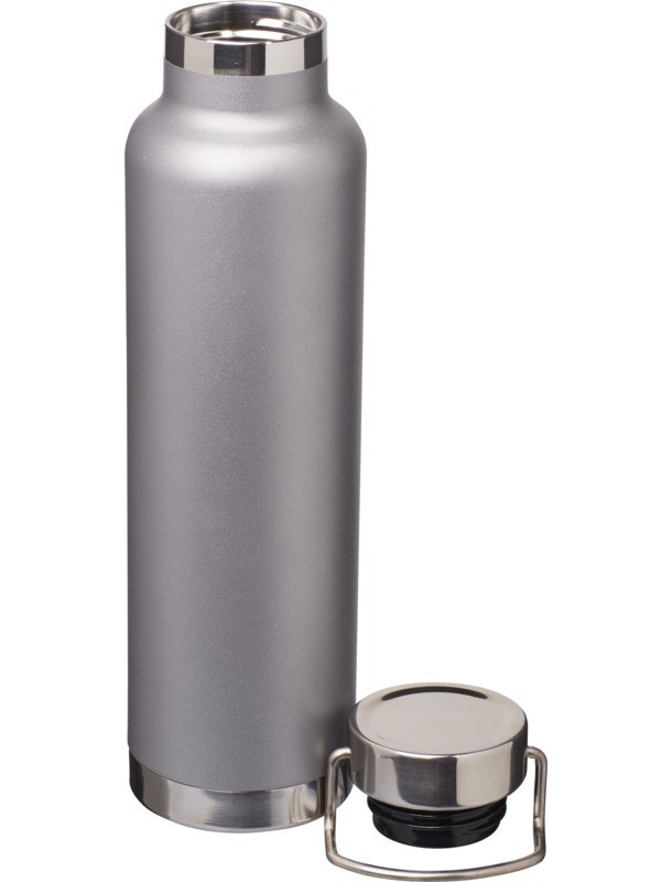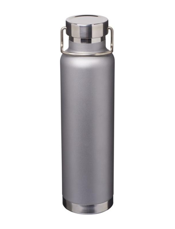 Bouteille isolante Thor 650ml. Bouteille en acier inoxydable avec isolation par le vide et placage en cuivre, ce qui vous permet de conservez vos boissons chaudes pendant 12 heures ou froides pendant 48 heures. La construction évite la condensation sur l'extérieur de la bouteille. Revêtement tendance et durable. Couvercle vissé en acier qui évite les écoulements et passant en acier. Large ouverture pour une utilisation plus agréable. Parfaite pour glisser des cubes de glace. Capacité : 650 ml. Sous coffret cadeau Avenue. Acier inoxydable.