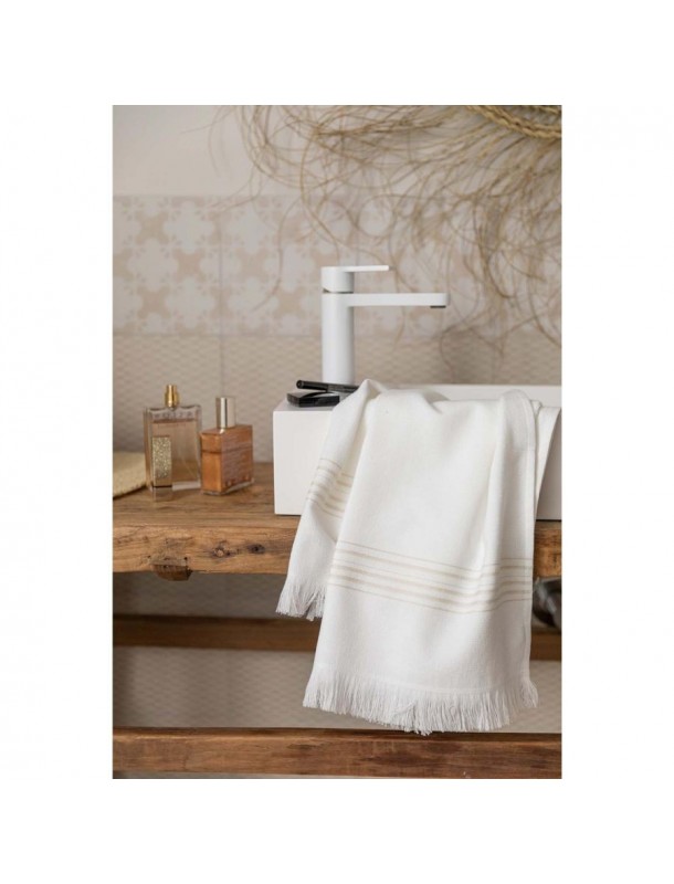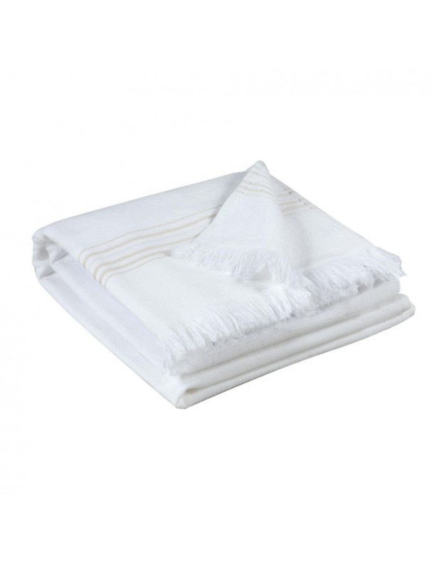 Fouta de la collection Cancun doublée en éponge de couleur Neige. Matière de la serviette : Pur coton. Dimensions du produit : 90 x 180 cm. Cette collection de serviette de plage vous envelopperont avec douceur à la sortie de votre bain. Recto voile ou verso éponge, choisissez le côté qui vous convient. Son liteau ciselé en font un accessoire à finition soignée.Avec un grammage de 300 GSM