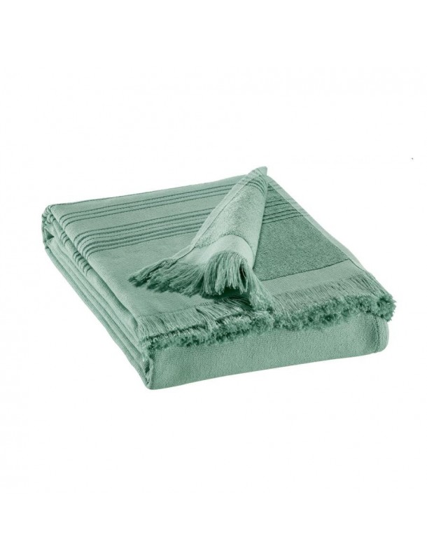 Fouta de la collection Cancun doublée en éponge de couleur Sauge. Matière de la serviette : Pur coton. Dimensions du produit : 90 x 180 cm. Cette collection de serviette de plage vous envelopperont avec douceur à la sortie de votre bain. Recto voile ou verso éponge, choisissez le côté qui vous convient. Son liteau ciselé en font un accessoire à finition soignée.Avec un grammage de 300 GSM