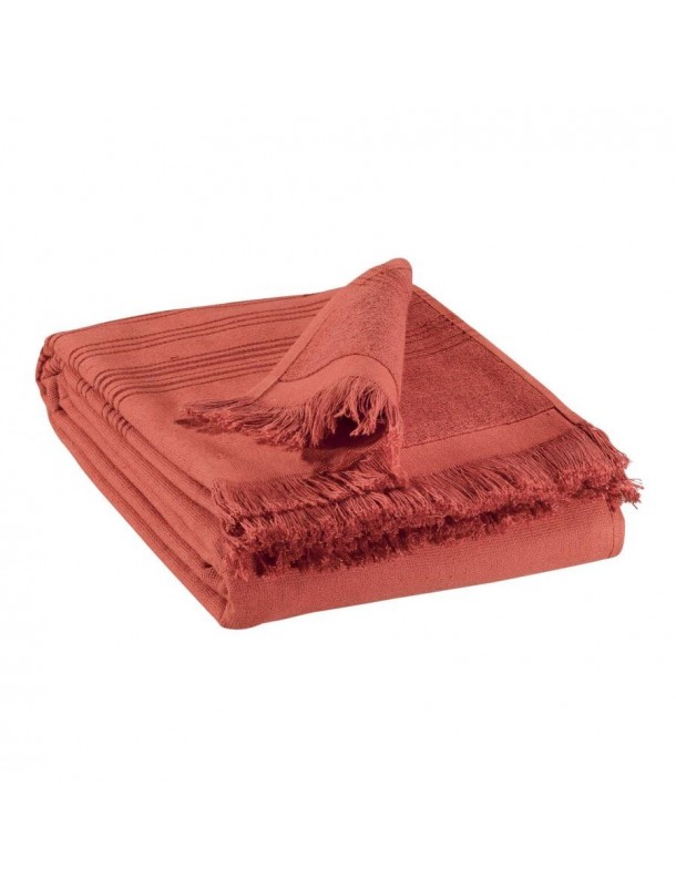 Fouta de la collection Cancun doublée en éponge de couleur Tomette. Matière de la serviette : Pur coton. Dimensions du produit : 90 x 180 cm. Cette collection de serviette de plage vous envelopperont avec douceur à la sortie de votre bain. Recto voile ou verso éponge, choisissez le côté qui vous convient. Son liteau ciselé en font un accessoire à finition soignée.Avec un grammage de 300 GSM