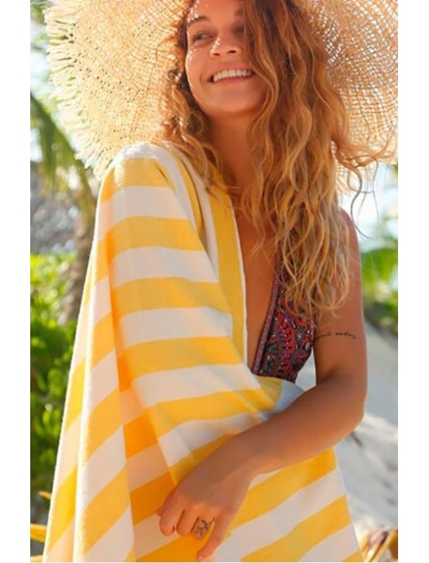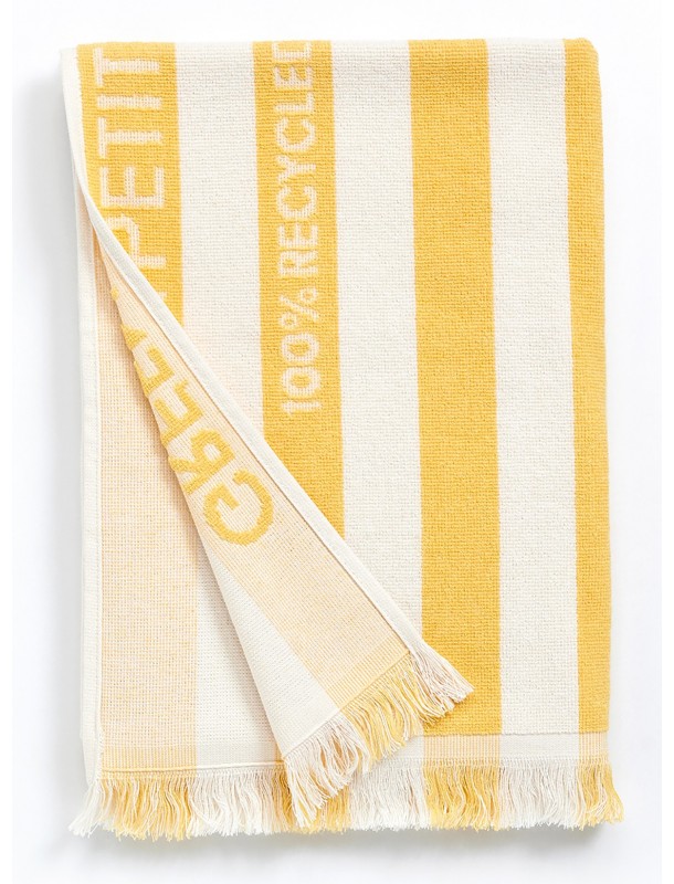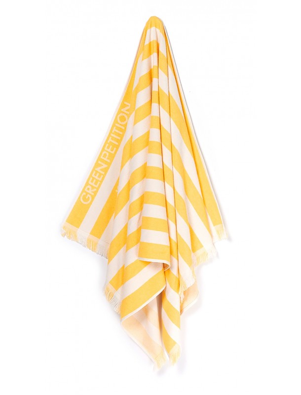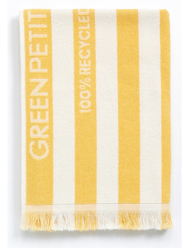 La serviette de plage, fabriquée à partir de coton recyclé, privilégie le confort et la santé de l’utilisateur. La serviette de plage est produite dans une très grande taille pour améliorer l’expérience de la plage. La serviette de plage, produite dans les dimensions de 100×180 cm (40”x70”), a un poids de 320 gr/m². La fonction de séchage rapide des serviettes élimine le poids causé par l’humidité. Vous pouvez facilement transporter cette serviette de plage soigneusement élaborée où vous voulez avec son sac spécial recyclé de 35 × 19 cm.