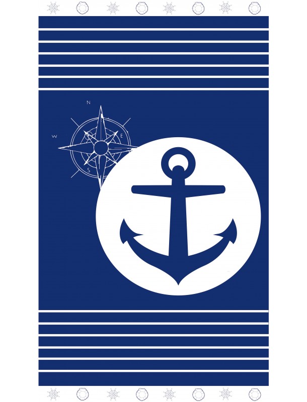 Sur 100x180cm de bleu navy se dessine un encre marine et une boussole pour ne pas perdre le nord.
