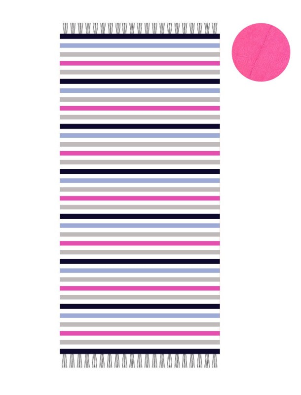 Drap de plage modèle Sunset Beach ( bleu marine, blanc, bleu, gris ciment, fushia éponge fushia ) de la collection été 2020 Natura Beach.