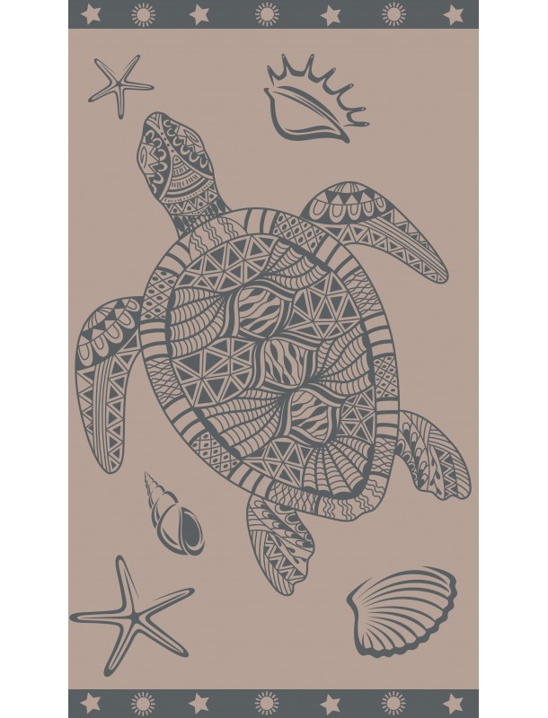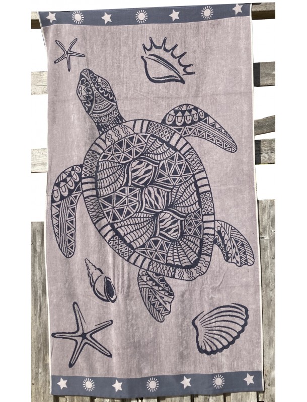 Emblématique serviette avec des tortues, celle-ci se dessine en gris sur fond couleur cappuccino. Malgré les années, la tortue est notre meilleure vente depuis le début de notre aventure avec vous sur notre site de vente en ligne. Cette année vous avez également la possibilité de la choisir en bleu lagon (voir dans la même rubrique la serviette en question).